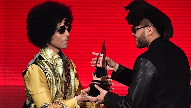 Toujours là où on ne l'attend pas, Prince était sur le plateau des American Music Awards à Los Angeles dimanche soir pour remettre le prix du meilleur album soul/R&B de l'année. Le chanteur à l'afro grandissante (qui ne sort jamais sans sa guitare) a remis le premier prix de la soirée au crooner canadien The Weeknd pour son album Beauty Behind The Madness. Revivez son passage aux American Music Awards dans la vidéo [...]